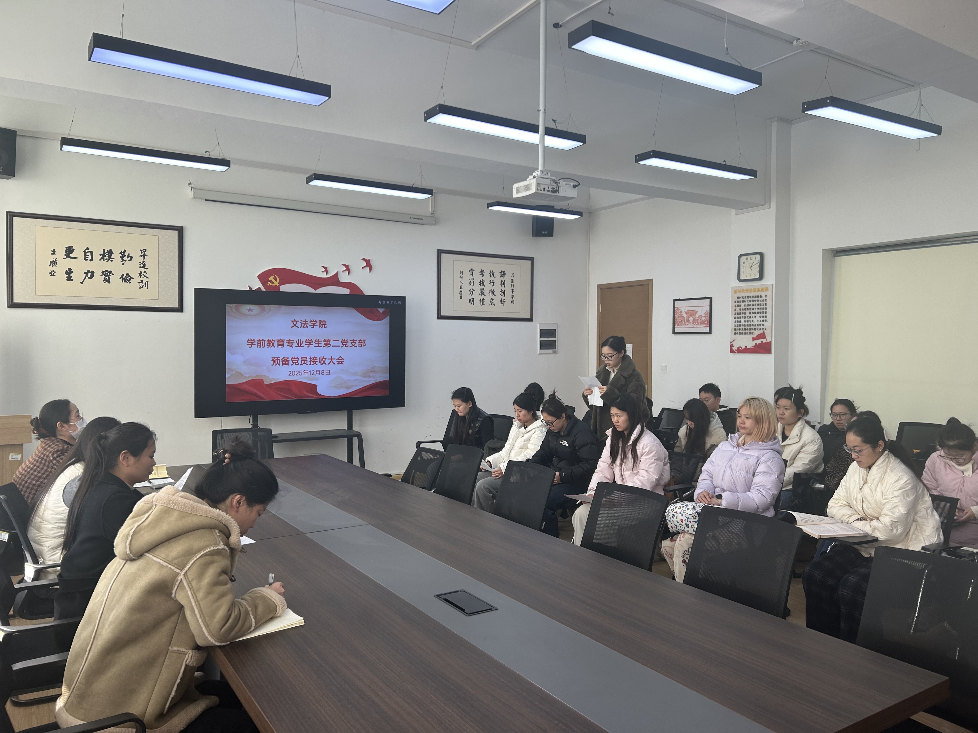 为进一步加强队伍建设,增强党支部凝聚力和战斗力,12月8日,365VIP英国上市官网学前教育员工第二党支部在教学1号楼314会议室召开预备党员接收大会,研究讨论王孜贤等4名预备党员接收事宜。会议由党支部书记刘欣欣主持,支部全体党员参加。