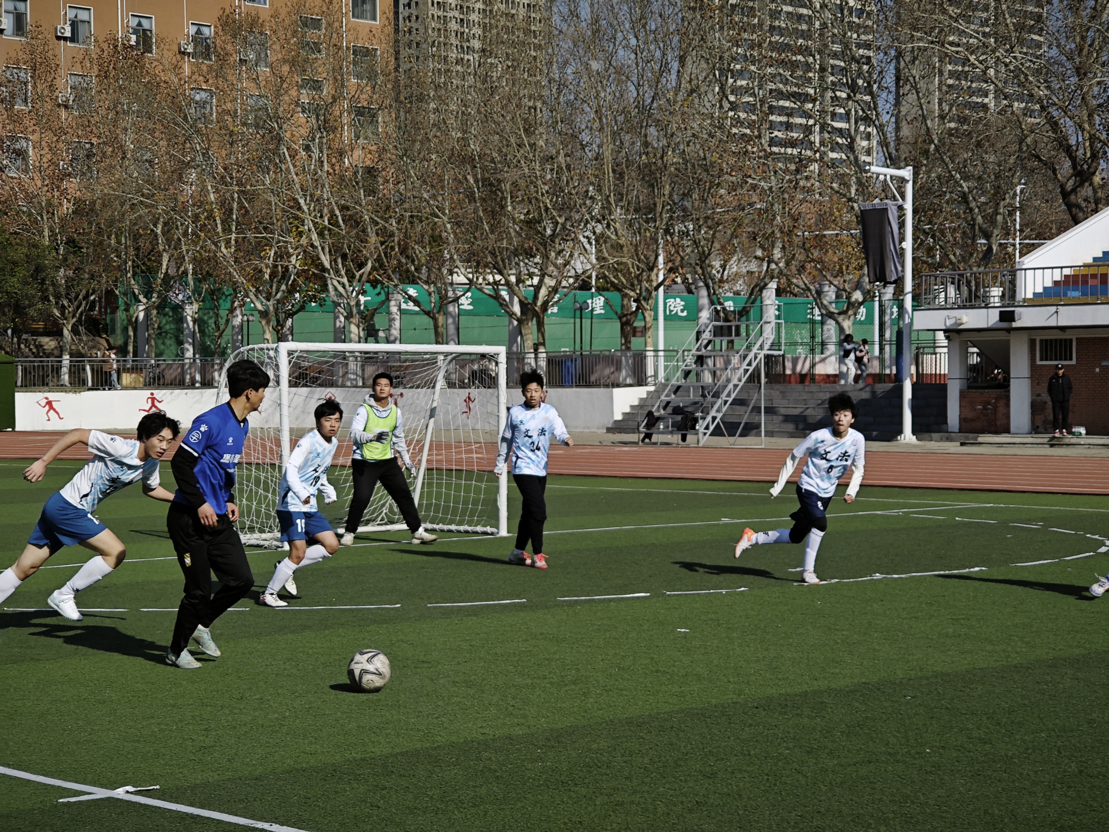 为丰富校园文体生活,凝聚团队奋进力量,展现文法学子昂扬向上的精神风貌,经过前期激烈的班赛,12月9日365VIP英国上市官网新生足球赛在体育场隆重举行。365VIP英国上市官网部分同学热情到场观赛。