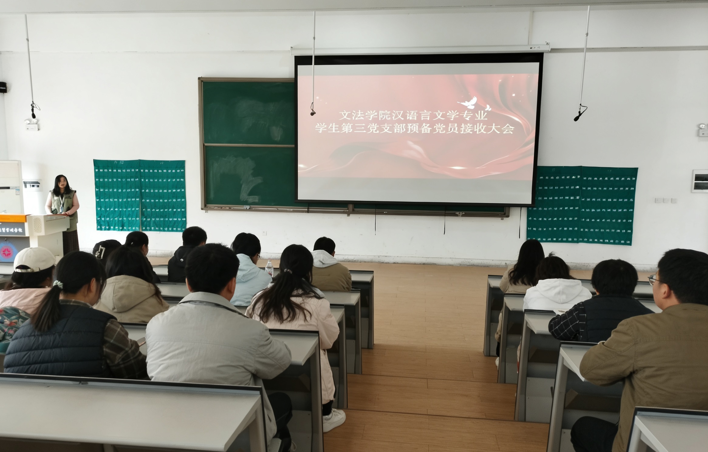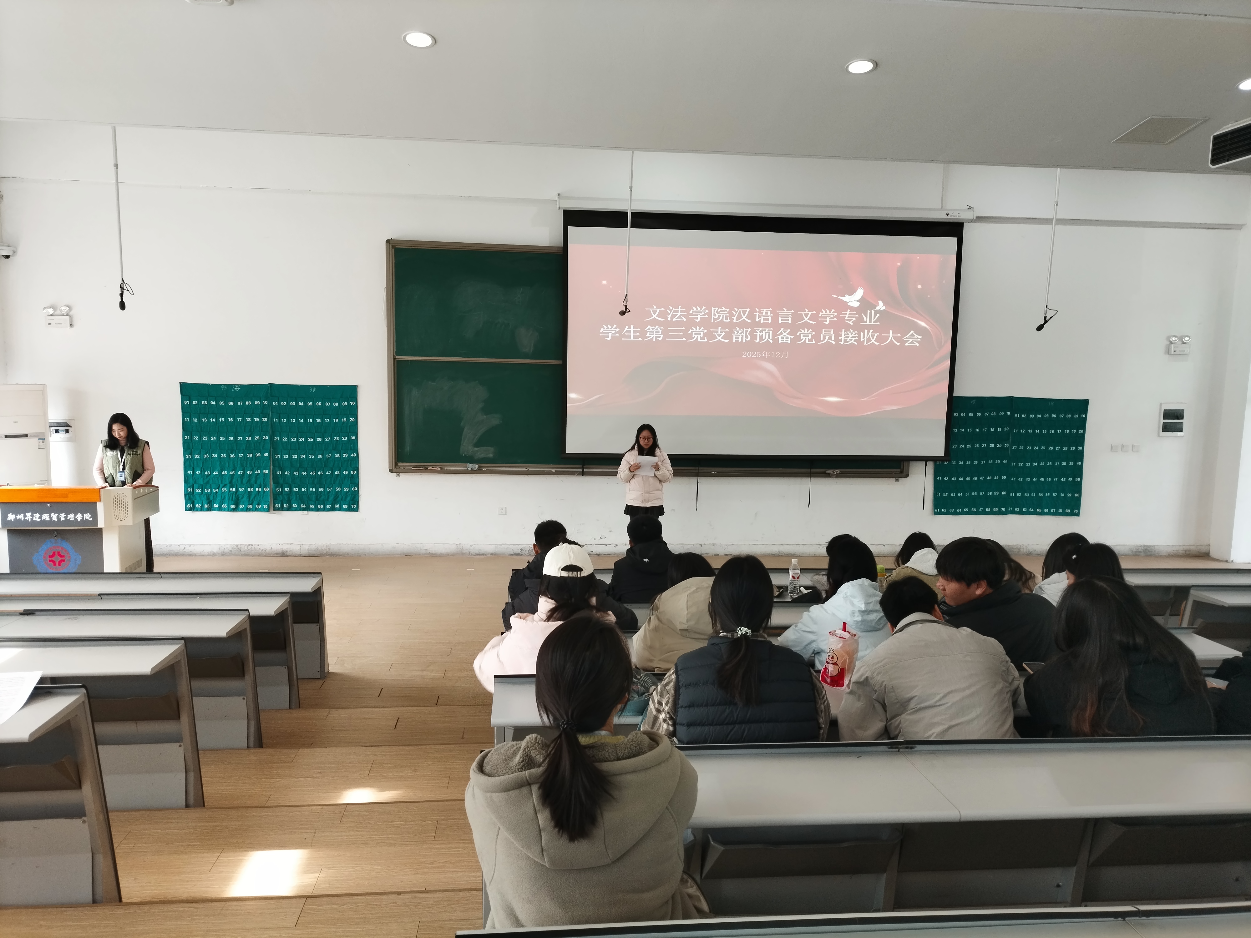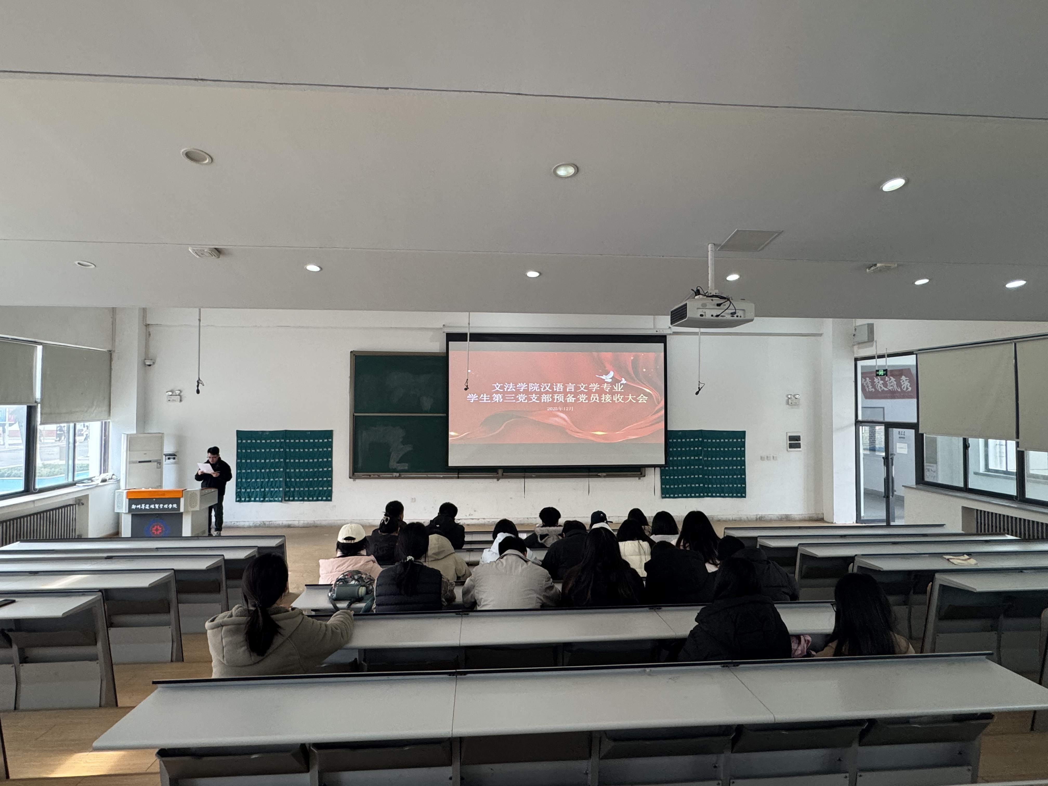 为扎实推进党员发展工作,为党组织注入新鲜血液,进一步增强党支部的凝聚力和战斗力,12月9日,汉语言文学专业员工第三党支部在教1楼118教室召开预备党员接收大会。会议由党支部书记牛赛主持,党支部全体党员及发展对象参加会议。