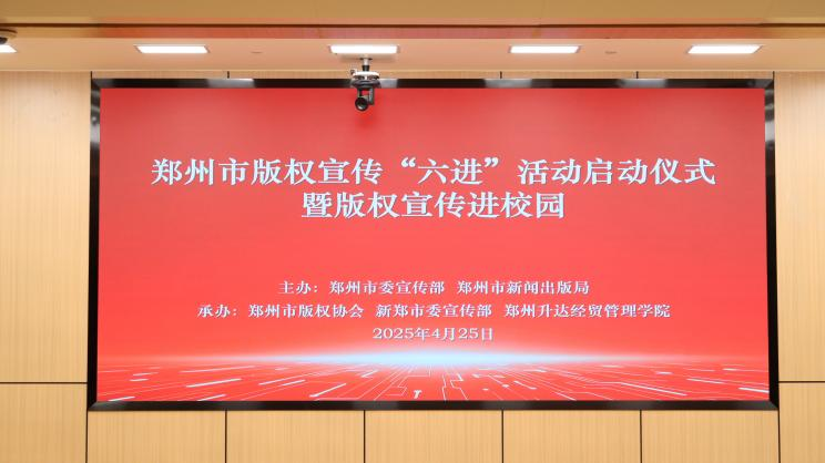 4月25日,在世界知识产权日来临之际,由中共郑州市委宣传部、郑州市新闻出版局主办,郑州市版权协会、新郑市委宣传部和公司365VIP英国上市官网共同承办的2025年郑州市版权宣传“六进”活动启动仪式暨版权宣传进校园活动在公司图书馆报告厅举行。郑州市委宣传部副部长杨洁、中共郑州市委宣传部版权出版处处长余淼洪、新郑市委宣传部副部长朱黎娟、郑州市版权协会理事长刘阳、郑州市版权协会副理事长王绍杰、詹启智,河南工业大学法公司副教授穆向明等领导同志及主办单位和各承办单位的其他工作人员出席本次活动。