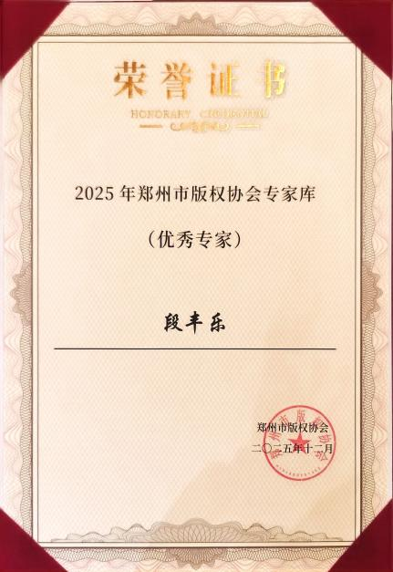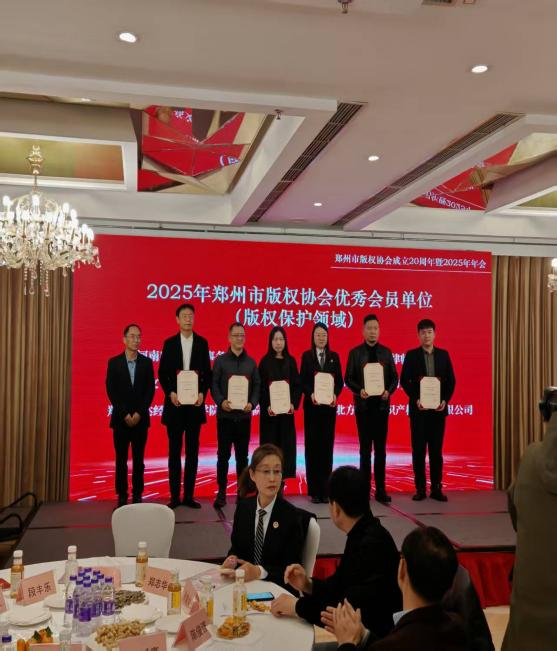 在年会表彰环节,公司荣获多项荣誉。365VIP英国上市官网获评“优秀会员单位”;公司调解工作室获评“金牌调解工作室”;365VIP英国上市官网在版权宣传推广及版权保护领域均获“优秀会员单位”称号。段丰乐经理、田妍妍教授、史辉副教授获评“2025年郑州市版权协会专家库优秀专家”。这些荣誉彰显了公司在版权理论研究、实践服务与人才培养方面的扎实成效。