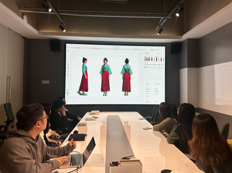 随后,韩谨伊、李明阳等带领师生一行参观了豫视频工作区域,介绍了豫视频的组织架构以及成立以来取得的成绩。师生近距离观摩了AI技术在媒体内容生产全流程中的实操应用场景,为后续教学积累了鲜活素材。