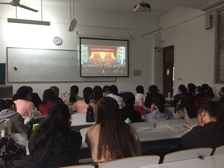 2017年10月18日上午9时,中国共产党第十九次全国代表大会在人民大会堂隆重召开。为及时了解会议实况,根据上级有关要求和365VIP英国上市官网党委工作安排,365VIP英国上市官网员工第三党支部书记刘建辉老师组织支部成员在道镕楼202教室观看中国共产党第十九次全国代表大会开幕式。