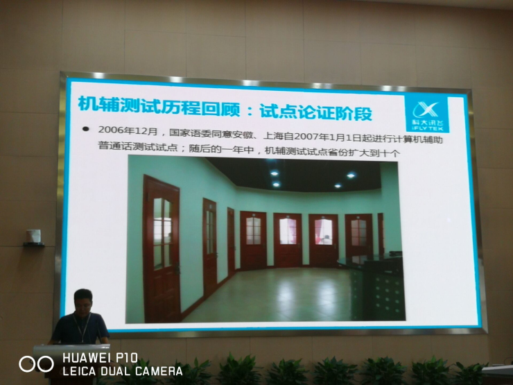 河南省普通话水平测试站负责人培训班由科大讯飞股份有限公司主办,主要研讨修订了有关普通话测试管理规定,普通话测试管理系统、测试系统等业务培训及规范管理等文件。会议伊始,河南省教育厅语言文字应用管理处柳建伟处长致开班辞,他欢迎大家的参会,并对科大讯飞的科技表示肯定。接着,科大讯飞的负责人致欢迎辞,并介绍了“机辅测试”发展历程及应用现状,智能语音技术在普通话测试和教学中的应用。