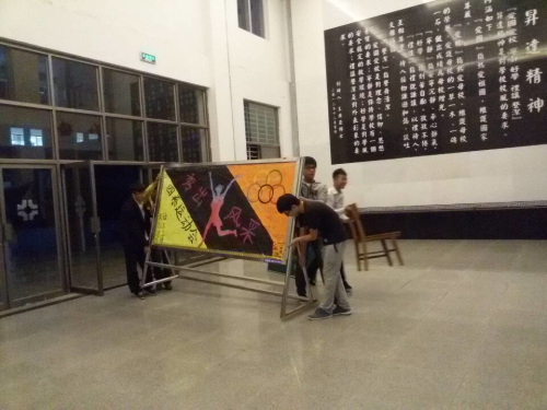 运动会开始前,志愿服务小组成员为保证运动会井然有序的进行,一早就帮助系团委员工会成员准备会场上所需要的桌子、展板,并摆放的整齐有序,成员们积极参与,协调配合,对运动会的顺利开展起了积极地作用。在傍晚运动会结束后,志愿服务小组成员继续发挥模范带头作用,帮助后勤工作人员把器材展板等东西搬回指定位置。