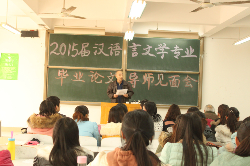 在见面会上,段丰乐主任指出我系对毕业论文工作一直非常重视,为保证2015届毕业生论文质量,精心组织召开了本次毕业论文指导老师见面会。他说:“军训是大学入学的第一堂课,毕业论文是大学的最后一堂课。”毕业论文有其独特的重要性和意义,他希望同学们在论文创作时坚持认真、严格、创新的原则,密切同指导老师的联系,同时要求指导老师严肃、认真的对待员工的每篇论文。