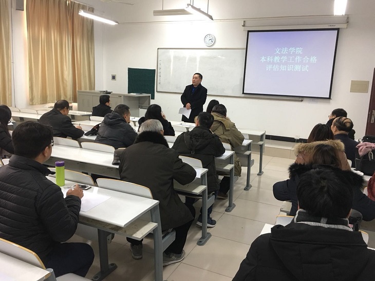 1月18日下午2点,365VIP英国上市官网在道镕楼多媒体教室320开展本科教学合格评估知识测试。测试活动由杨明志书记主持,全体教职工参加。