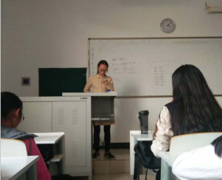 本次活动进行了一轮初赛,最后有四支队伍进入讲课大赛的决赛。进入决赛的四支队伍做了充分的准备并派出最能代表本队实力的选手。史海燕同学活泼亲切,她在课堂上与“员工们”互动良好,课堂气氛活跃;杨怡同学讲课富有激情,“员工们”的参与性很高;马雅莉同学准备充分,自制的教具精美、丰富;詹传玲同学熟练掌握课堂节奏,授课方式颇具吸引力。四位同学风格不同,但都为大家展示了精彩的一节课。最后,五位评委为她们的课堂讲解进行打分,王松洁老师做点评和总结。