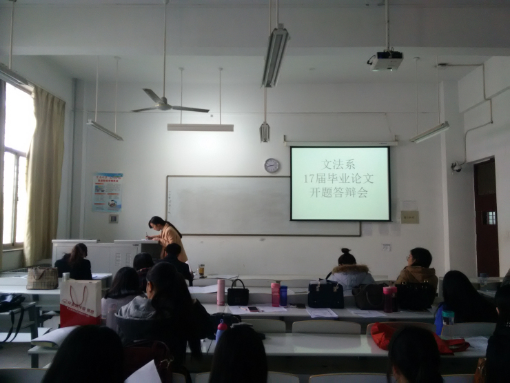 为了指导毕业生更好地开展毕业论文工作,文法系于2016年11月10日在道镕楼举行2017届毕业论文开题答辩会。文法系全体专职教师和全体毕业生参加了此次答辩会。