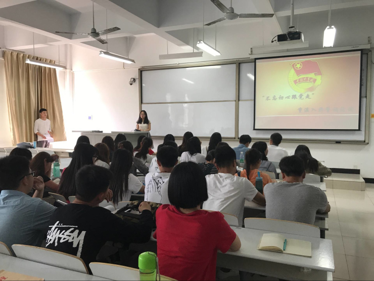首先,活动开始,全体起立,奏唱中国共青团团歌。在恢弘嘹亮的歌声中,团员青年们再次接受精神的洗礼。接着,由文法系团委组织部副部长李鹏娜带领大家起立宣誓,她声声铿锵,字字有力。每一句誓词都鞭策着我们,使我们在誓言中不断反思,作为中国共青团的一员该有着怎样的思想觉悟与切身实践。随后,文法系团委组织部副部长张曼琪作为团员代表发言,她再次为我们普及了中国共青团的相关知识,让我们对中国共青团又有了一个更深刻的了解,使我们更加明白作为一名共青团员,要如何承担起自己的责任。最后,由文法系团委副书记孙诗雯对此次活动做出总结,提醒我们作为一个共青团员要严以律己,不断突破自我。