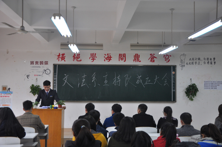 为了给同学们提供更多展示自己才华的舞台,为系主持队注入新鲜血液,为升达主持的舞台上贡献新的力量,文法系主持人大赛经过初赛和决赛的精心选拔,共有八位选手脱颖而出。于11月9日中午12:40在商管楼401举行了文法系主持人成立大会。到场的嘉宾有:15级团总支书记张明奇老师、文法系本届主席团全体成员、第14届学艺部部长黄楠。部分团学会成员参与本次活动。