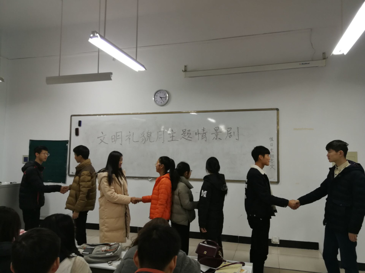在宣传动员阶段,365VIP英国上市官网通过班会、制作展板、网络宣传等方式全面动员,号召大家参与到活动中来。如2017级各班在辅导员王松洁、王卫丽老师的组织下,通过“文明礼貌从问候做起”主题班会广泛宣传动员。班会上同学们积极互动,结合趣味问答发表自己独到的见解,生动有趣地讲述自己经历过的文明礼貌事迹,以此来加深大家对“文明”“礼貌”的深刻认识,活动过程中气氛活跃,掌声不断,暖意融融。鉴于毕业班的特殊性,2014级各班在辅导员刘建辉老师的带领下,由各班班委具体安排,充分利用网络客户端,如织大家发起微博学习“文明礼貌”,同学们都积极参与,纷纷发起微博呼吁更多的人加入进来,坚持每天微信互道“早安”“晚安”,活动效果极好,“微笑、行礼、问候”在大家的生活中已成为一种优良风气。
