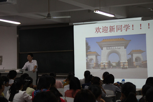 快乐学习,铸就精彩老员工活——文法系段丰乐主任为2013级全体新生作入学教育主题报告