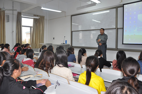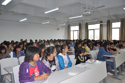 9月24日上午,文法系党总支杨明志副书记在道镕楼519教室为2013级文法系新生作了一场生动的入学教育主题报告。