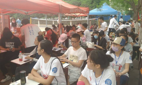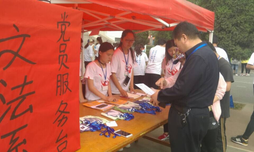 运动健儿英勇拼搏 党员同志无私奉献 —文法系“党员服务台”志愿协助运动会