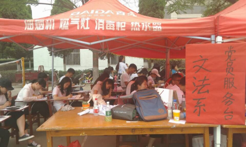 文法系党员服务台充分发挥了员工党员的先锋模范作用,检验了党员的服务奉献意识,实践了全心全意为同学服务的宗旨,成为运动会上一道美丽的风景。(供稿人 文法系文学中心 付景方)