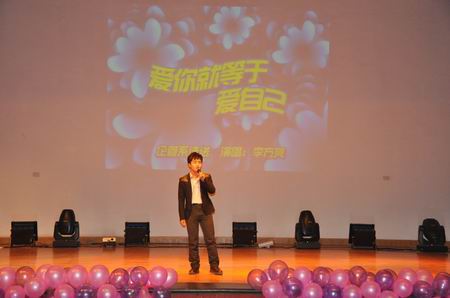 伴随着激情的舞蹈,晚会正式拉开了帷幕。今晚群星灿烂,这注定是一个激情荡漾之夜,注定是一个令人流连忘返之夜,注定是一个师生同乐的不凡之夜。一首《爱你就等于爱自己》为观众呈现了柔情似水的场面。小品《应聘》引起现场观众的笑声连连和阵阵掌声。晚会现场群情激昂,掌声雷动。紧接着各种节目轮番登场,异彩纷呈,魅力四射。歌曲《老男孩》把晚会带入了第一个高潮,紧随其后的朗诵《青春赞歌》与现代舞《circus》也毫不逊色。最引人注目的是相声《犯二青年》,为观众带来了阵阵欢乐。有趣的是本场晚会来了一次新生才艺大连贯,彰显了各类艺术的魅力,场面甚是热烈。四系新生辅导员的一首首歌曲又一次把晚会推向高潮。舞起乐鸣,《谁不说俺家乡好》民族风情一下就给了在场观众一种震撼,演出同学那轻灵而娴熟的节奏、动感而激情的舞姿以及她们与音乐完美的融合,无不感染在场的所有观众,牵动着每一颗观众的心。晚会最终在优美的四系新生合唱《爱》中结束,在音乐的伴奏下,主持人致闭幕祝福语,为此次晚会画上完美的句号。相信它将化作一杯琼浆玉液,沁人心脾;相信它将化作一段美好的回忆,萦绕不去!