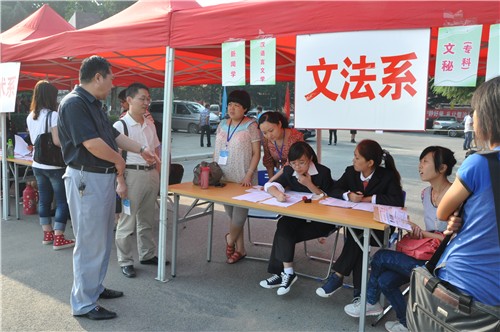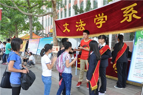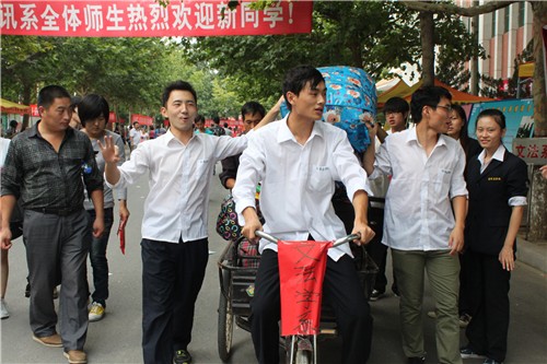 文法系领导对此次迎新工作极为重视,为确保此次迎新工作顺利进行,我系在迎新工作开始前多次召开专题会议对迎新工作进行认真细致的部署,制定了详细具体的迎新计划。9月5日中午,因提前报到新生人数较多,我系按照公司统一部署,紧急抽调师生提前投入迎新工作中,下午1:00,各报到服务点师生均按时到位,按照公司要求开展迎新工作。9月6日8:00,系党总支书记张朝阳、系主任段丰乐、系党总支副书记杨明志一行即深入我系各迎新接待点检查指导迎新工作,并与新生家长亲切交谈、解答新生及家长的问题。
