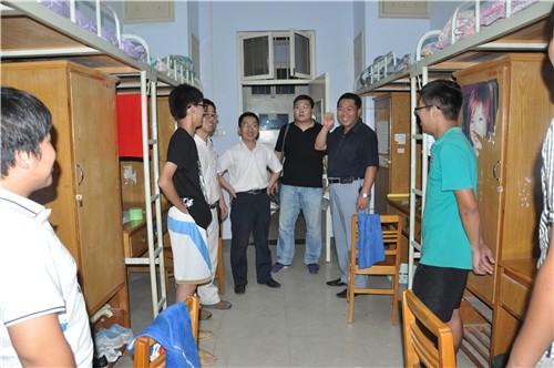 9月6日晚上9时,忙碌一天的系主任段丰乐、系党总支副书记杨明志、行政秘书郑玲玲老师、两位新生辅导员彭凯和郝艳海老师不顾一天的劳累深入员工宿舍看望新生,为新生送去关怀和问候。