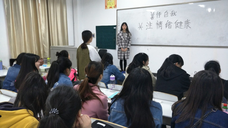 3月28日上午,文法系16级学前教育专业在道镕楼103教室召开针对同学情绪健康的主题班会——“善待自我,关注情绪健康” ,班会由心理委员兰婧主持。