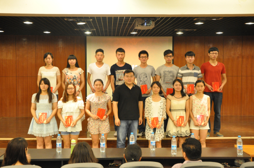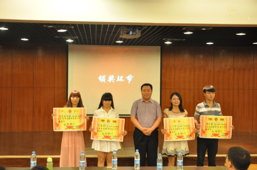 而后,大家一起观看了记录这一学年团学会工作点滴的幻灯片,一幅幅熟悉而又温馨的场景,勾起了大家的团学回忆。接着由郑玲玲老师代表系团委宣读表彰决定。13级团总支书记郭青梅老师、团委常务副书记彭凯老师以及团委书记郑玲玲老师、党总支杨明志书记分别对获奖的优秀干事、优秀部长、主席团、优秀部门进行颁奖并合影留念。
