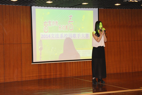 期待已久的文法系校园歌手大赛于3月17号在外语楼二楼多功能报告厅隆重举行。歌声从这里传出,音符在这里飘扬,青春从这里激荡,梦想在这里起航。出席此次活动的嘉宾有文法系员工会主席吴小宁,副主席郭俊杰、汪雪洁、贾丹彤及上届文法系歌手大赛选手宋茵、刘瑜,文法系13级全体员工到场观看了本次比赛。
