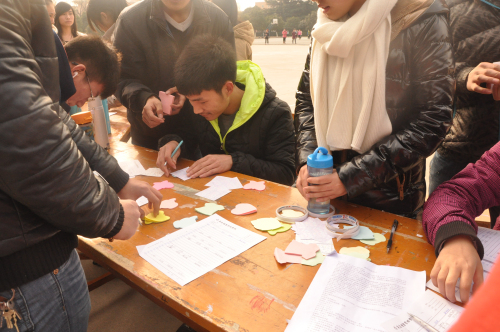 本次三行情书活动主要围绕亲情、友情、爱情等方面展开,活动稿件征集过程中,同学们热情饱满,积极参与,顿时把现场气氛推向高潮。他们按照稿件要求,充分发挥想象力与创造力,创作出一篇篇灵动幽默、睿智深情的三行情书,一下午的时间展板上就贴满了作品。19日,经过了初步的筛选,一些创意精妙、文思俱佳的作品作为优秀创作进行展示并邀请全校同学对这些作品进行投票,选出心目中的最佳情书,让全校员工公平公正地为他们喜爱的作品投上宝贵一票。投票活动的当天,现场场面非常火爆,气氛更是热烈,同学津津有味地欣赏那些三行情书,尽管天气寒冷,但冻不住他们脸上的笑容,更冻不住他们温暖的心。