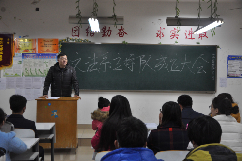 为选拔具有主持潜力的人才,培养和储备优秀主持人,为院大型活动推荐合格主持人,12月2日晚7点,文法系于商管楼403教室隆重举行了第二届主持人成立大会。出席本次大会的嘉宾有文法系团委常务副书记彭凯老师,15级团总支书记张明奇老师,系团委副书记张园园、王玮辉,系员工会主席张文,员工会副主席陈莹、董小双,前主持队队长秦玥。