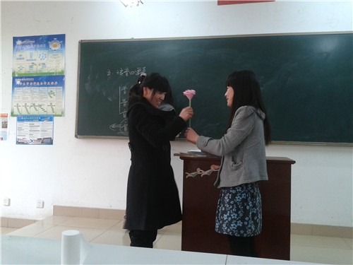 活动之前,由系团委出资购买手工折纸,由文法系文艺部联合院手工社共同制作了一朵朵精美的折纸花作为礼物献给在节日期间仍辛勤工作的女教师们并送上对老师的祝福,以此表达对老师的感恩之情。同学们将饱含着感激之情、凝聚着自己智慧和手工技巧的折纸花送给女教师们并送上节日的祝福,老师们欣喜地接过同学们自制的精美礼物,同时也表达了对同学们的感谢和祝愿。