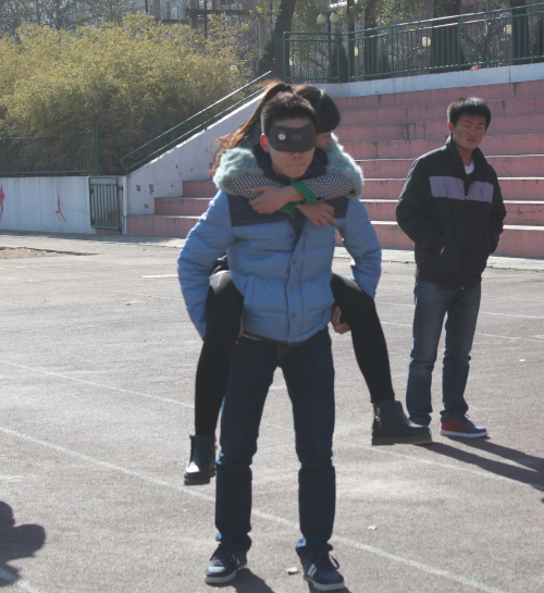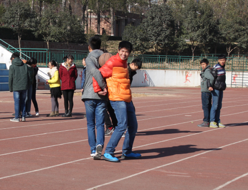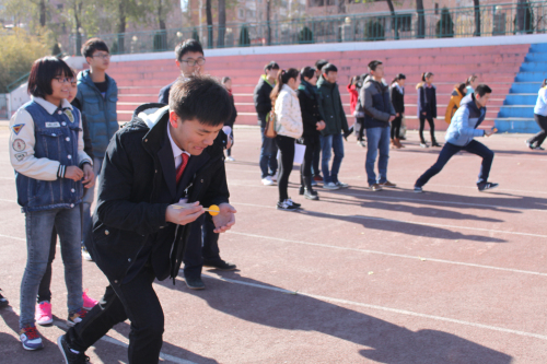 我系员工以素质拓展比赛的形式来纪念这个特殊的日子,同时也拉开了我系“一二•九”系列纪念活动的序幕。比赛尚未正式开始前,主持人宣读了本次比赛的流程与规则。本次比赛以班级为单位,各个参赛队在完成各项体育项目的同时回答12.9相关知识。本次比赛共有四个比赛项目,分别是:50米夹乒乓球接力赛、“瞎子背瘸子”、背夹篮球、团体跳绳。每个项目都需要团队的配合才能完成,这样有利于锻炼同学们的团队合作精神。随着主持人的一声令下,比赛正式拉开了序幕,同学们用筷子夹着乒乓球奔跑着,一不小心,乒乓球就掉在地上引起了同学们一阵阵欢笑。队员努力拼搏,精诚合作,完成了一项又一项的比赛项目,向我们展现出了班级优秀的精神风貌。比赛场面也是异常热闹,充满了欢声笑语。随着最后一项比赛项目的结束,本次活动进入尾声。本次比赛汉语言班获得第一名,法班第二名,新闻班第三名。