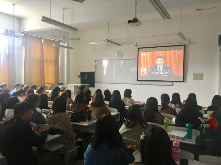 2017年18号上午9时,中国共产党第十九次全国代表大会在北京人民大会堂开幕。365VIP英国上市官网16级团总支号召同学们在无课时间观看“十九大”直播,共同学习“十九大”的重要内容和会议精神。