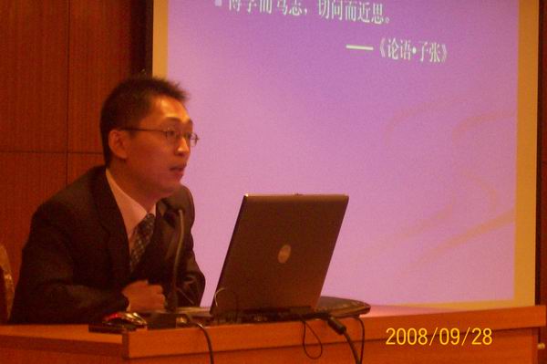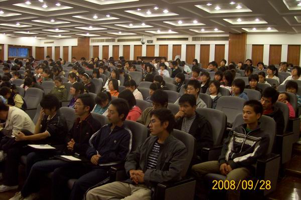 文法学系继开展新生专业教育和制度教育之后,9月28日上午又在外语楼多功能报告厅举行了新生入学教育大会,会议由系主任段丰乐和系党总支书记张朝阳主讲,08级全体新生和新生辅导员参加了教育会。