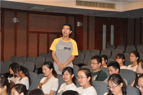 首先,由毕业生党员代表发言。第四员工党支部党员代表程碧辉同学结合自己步入工作岗位的切身经历,谈到了自己在系党总支和党支部中得到的锻炼,正是由于党组织的培养使自己摆脱了稚嫩,一步步走向成熟,最终迈向成功。第二员工党支部党员代表周强同学谈到自己从大一到大四对“党员”这一光荣称号认识上的转变,他指出,作为员工党员,在学习与生活中更多体会到的是一种荣誉感,走入工作岗位后更多体会到的是一种责任感。此外,第四员工党支部党员代表张志顺同学代表文法系全体毕业生党员表达了对系党总支、党支部大力培养的感谢,还针对党组织生活方面提出了一些非常有建设性的意见和建议。