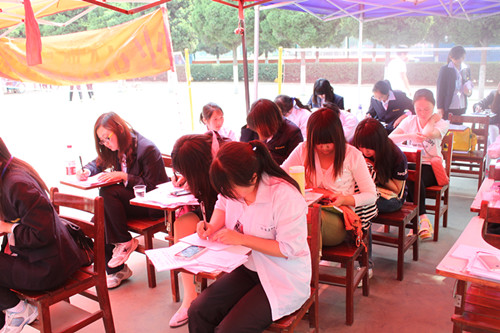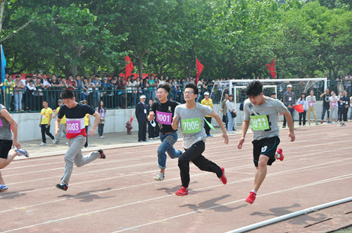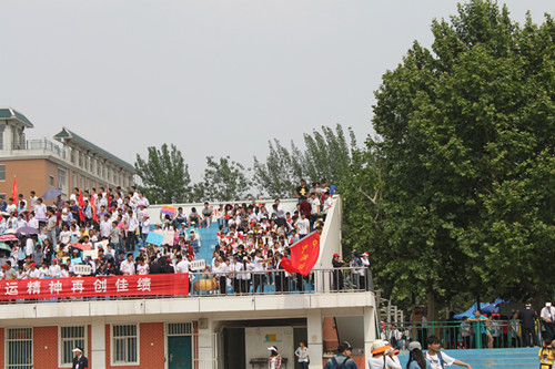 大本营里,忙碌而紧张有序。团学干部组织运动员做赛前准备、带领运动员检录和做好各项赛后服务;写通讯稿的员工干部们在属于他们的文字世界里驰骋耕耘,全面及时报道运动会赛场上的风云动向;党员志愿者服务台里,每一个党员都是一面全心全意服务的旗帜,事无巨细,主动承担,充分践行了党的群众路线教育思想;看台上,鼓乐声声,彩旗飘扬,文法学系观众身着统一服装,每人手拿一面小红旗,在响亮而有节奏的鼓点指挥下,全体观众挥舞着小红旗情绪高昂地为赛场上的运动员们呐喊助威,真正践行了“友谊第一,比赛第二”的运动精神。
