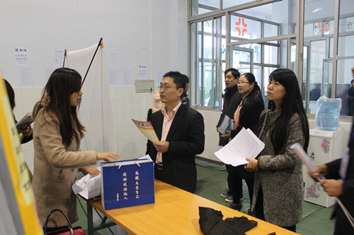 11月14日上午,公司2014届毕业生供需见面会如期举行,文法系段丰乐主任、杨明志副书记、行政秘书郑玲玲老师、教学秘书曹丹丹老师、文学教研室主任乐铄老师、法学教研室主任徐静老师以及毕业班辅导员和上午没课的任课教师深入招聘会现场调研。