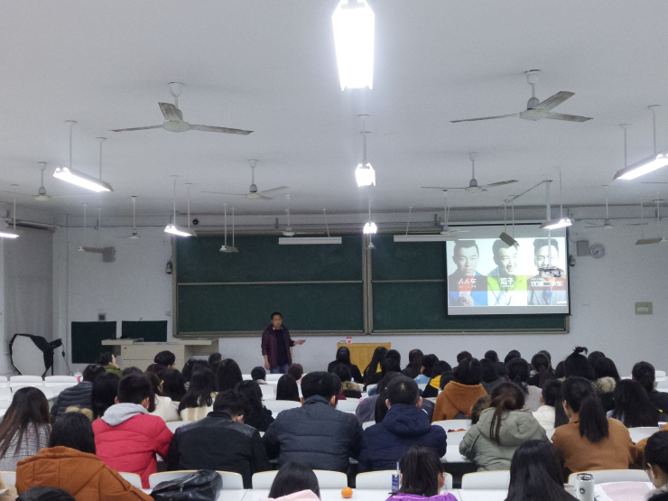 报告分两个主题:首先是摄影技巧与新闻选题和拍摄。刘栋杰老师通过几组照片的对比,用最简单的方式让大家对摄影技巧带来的作用有了基本的认识。然后,他从人像拍摄入手,与同学们热情的互动,并且介绍了四种最基本的肖像打光法,让同学们对光线的方向带来的作用有了一个基本的认识,并真正体验到摄影的乐趣。其次,刘老师概括了新闻摄影的含义和技巧、以及拍摄方法。他告诉同学们要不断提高自己的知识水平和认知能力,提高摄影观看和拍摄能力,提出新闻现场“早来晚走”原则和“多拍、多看”观点。