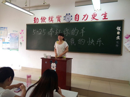 为了迎接5.25心理健康日,引导老员工关注自身心理健康和心灵成长,加强同学之间的友好交往,共创阳光和谐健康的班级文化氛围,文法系13级全体同学于5月22日——5月25日下午在的各班主教室召开以“5.25 我爱我”为主题的心理健康班会。
