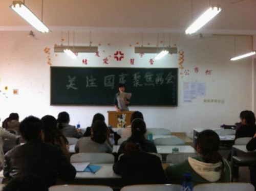 为关注两会进程,学习两会精神,3月7日下午,文法系11级团总支在刘玉梅老师的指导下组织了关于“学习‘两会’精神,聚焦两会热点”的专题团日活动。