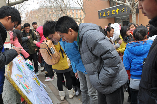 12月18日中午12点,由文法系外联部主办的三节贺卡大赛在金控中心门口拉开序幕。本次活动较为贴近生活,也能发挥同学们的创新力和想象力,所以刚开始就引起了广大同学的兴趣,不仅有文法系众多学子,也有其他各系的同学。