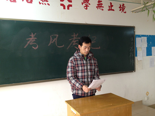 彭凯老师讲到:作弊不仅是对自己能力的否定和蔑视,更是对公司优良学风的亵渎,作弊者不仅丢掉了自己的诚信,更丢掉了自己做人的尊严,彭老师希望同学们要认真复习备考,在期末考试中诚信答题。随后10级法本一班班长赵明说,诚信是做人的根本,是当代员工义不容辞的责任,我们应该通过本次期末考试完成对自己知识和人格的考验,特别是我们法学专业的员工懂法和守法,应从“做文明员工,交诚信答卷”做起。
