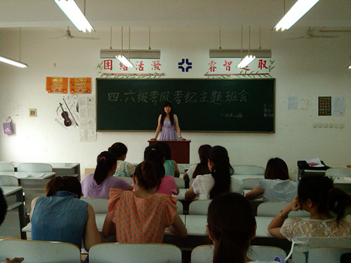 临近四六级英语考试与期末考试,为增强同学们对诚信考试的认识,端正考试心态,严肃考风考纪,6月8日,文法系11级团总支在刘玉梅老师的指导下分别召开了严肃考风考纪主题班会。