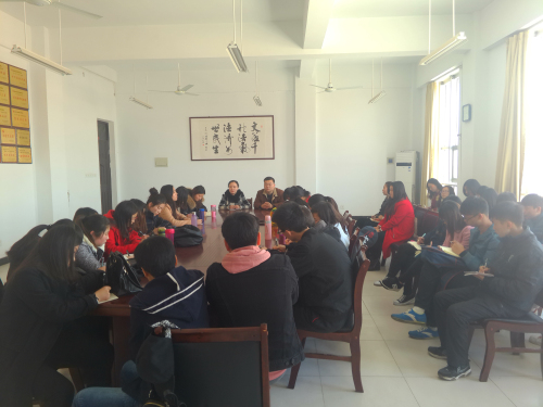 3月3日中午12:10,文法系团委员工会全体员工干部齐聚文法系会议室召开新学期团学工作会议,系行政秘书兼系团委书记郑玲玲老师,系团委常务副书记彭凯老师以及系团委员工会全体员工干部参加会议。
