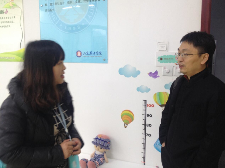 11月21日,在公司副经理兼文法系主任段丰乐带领下,学前教育学专业的马剑侠教授、青年骨干教师王倩、毛玉凤一行赴山东英才公司考察学习该校学前教育实验教学中心建设情况,受到山东英才公司付宏华经理及学前教育实验教学中心管理人员的热情接待。