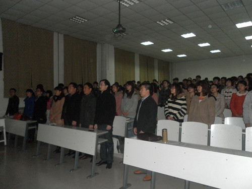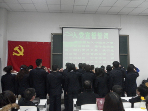 宣誓党员离场后,新党员代表张锡波同学、入党积极分子代表杨文静同学分别进行了发言。在表达自己对党的忠实信仰的同时,也表示要时刻以党员标准要求自己,不仅仅在形式上入党、组织上入党,更加要争取在思想上入党的决心。