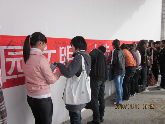 走进艺文广场,映入眼帘的是各种关于“文明礼貌”的宣传语、口号和展板,为活动营造出热烈而浓郁的氛围。伴随着配合手语表演的歌曲《爱的翅膀》,本次活动正式拉开帷幕,动人的歌声、深情的表演打动了在场的每位同学,同时也向同学们传达了一个信息:文明礼貌不应只停留在口头上,更要落实到实际行动中。紧接着是“文明礼仪我来选”的游戏互动环节,同学们热情高涨,纷纷踊跃参加。在体会游戏乐趣的同时也使大家更深刻地理解了“文明礼貌”的深刻含义。最后,同学们进行文明礼貌宣誓,庄严的誓词,坚定的表情,表达出大家践行文明礼貌的决心。最后,五系学子共同在题有“人人文明一小步,校园文明一大步,今日我们携手,共同迈进第一步”的红色条幅上郑重签上自己的名字,同学们的积极与热情将本次活动推向高潮。