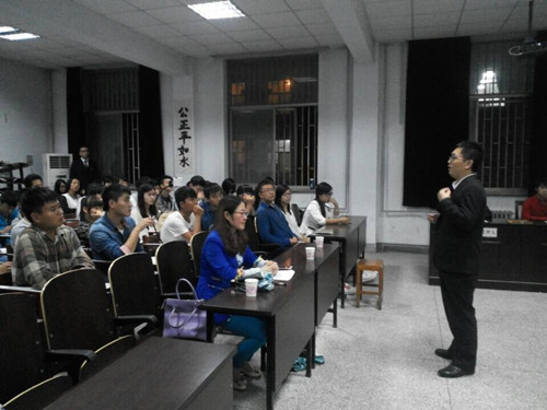 升达模拟法庭于9月28日晚七点在模拟法庭(即综合楼225)举行了一场面向全院的模拟审判之招新活动。出席此次活动的嘉宾有公司副经理兼文法系主任段丰乐老师、文法系民法学教授徐静老师和辅导员彭凯老师。
