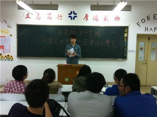 文法系团委认真组织学习贯彻《国务院关于支持河南省加快建设中原经济区的指导意见》