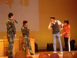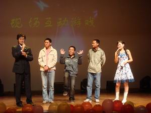 晚会在段丰乐主任热情洋溢的开幕词中缓缓拉开序幕,首先展现在观众面前的是一段街舞《难道你比我酷》,活力四射的表演立即将会场气氛烘托起来;女独唱《热情沙漠》以其独特的音色、奔放的台风赢来了观众阵阵掌声,同学们手中挥动的荧光棒与舞台上五彩的灯光相映成辉;在有奖互动环节中,台下同学与台上主持人的默契配合博得了观众的阵阵掌声和欢乐笑声;现代舞《SHOW COOL》则将晚会的气氛推向了最高潮,演员们炫目的动作将现代青年的青春活力表现的淋漓尽致;二胡独奏《奔驰在千里草原》、相声《百家姓》、小品《仓库是我家》等节目也给同学们留下了深刻的印象。