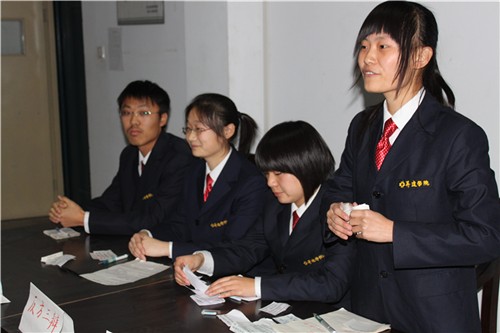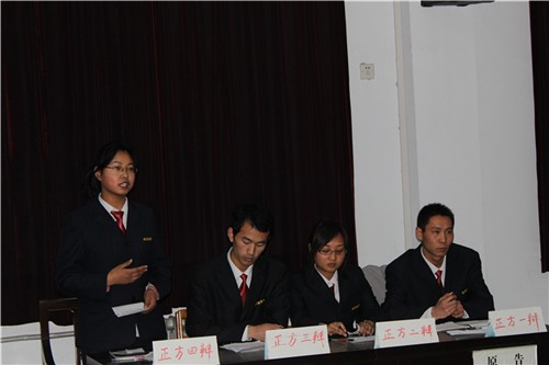 12月13日晚7:00,综合楼225教室迎来了大家期待已久的文法学系新生辩论赛总决赛。经过初赛阶段激烈的循环赛,最终10级法本一班和10级汉本一班两支队伍进入了最终冠亚军的争夺。本次新生辩论赛从初赛阶段便得到了系领导、老师的高度重视。文法系段丰乐主任、团委书记兼行政秘书郑玲玲老师、团委常务副书记郝艳海老师、团学会主要干部以及其他兄弟系辩论队队长均来到了当晚的比赛现场。