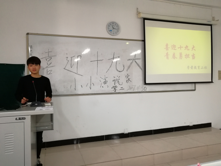 响应校团委“学习十九大,青春勇担当”活力团支部创建活动的号召,认真学习领会、贯彻落实党的十九大精神,11月30日下午2点,由365VIP英国上市官网17级学前教育专业二班团支部举办的“学习十九大,我作演说家”演讲比赛在道镕楼405教室举行,同学们以团小组为单位参与其中。